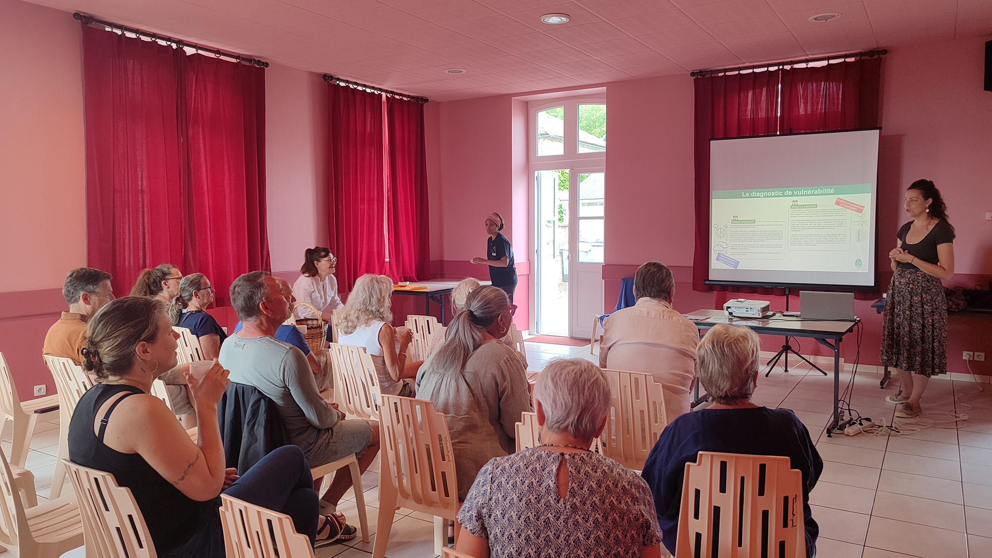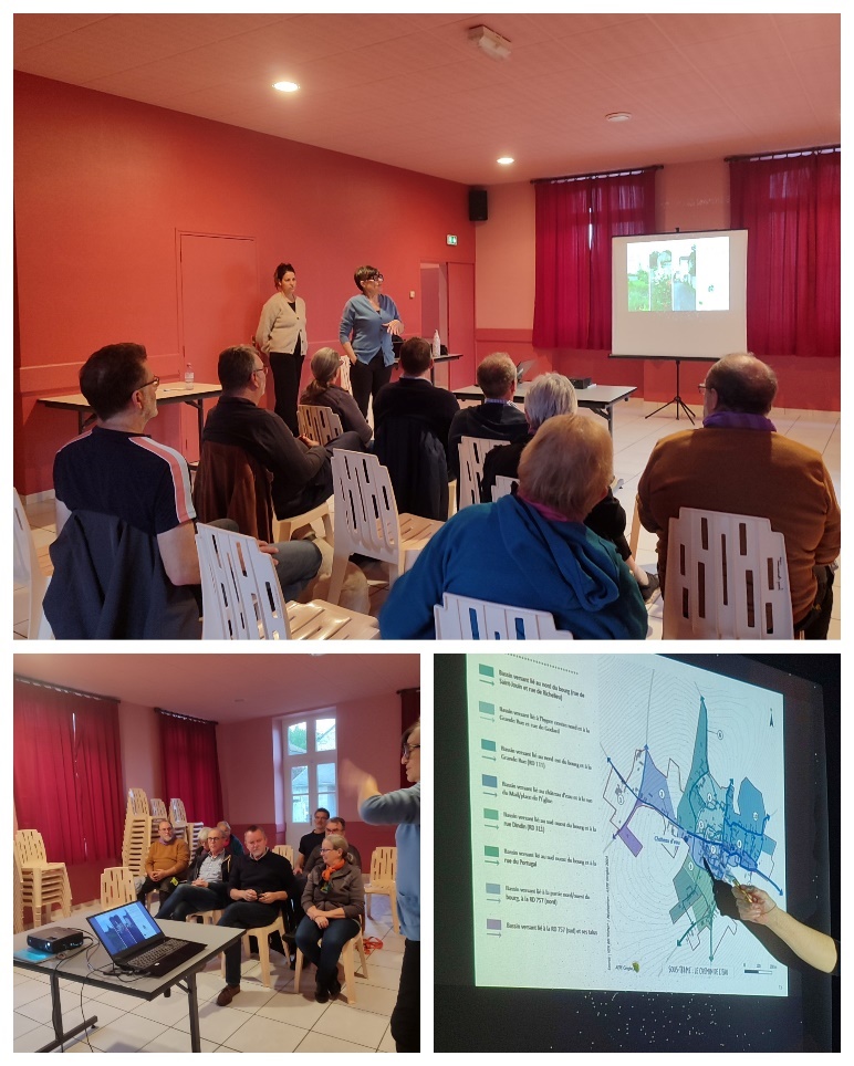 | Présentation du diagnostic de vulnérabilité face aux changements climatiques | 7 novembre 2024 | À la suite des témoignages de l’Entretien collectif, ces informations recueillies ont été croisées avec des données scientifiques pour établir un diagnostic simplifié à l’échelle du bourg. Le groupe d’habitants est venu l’enrichir grâce à ses remarques et observations. |