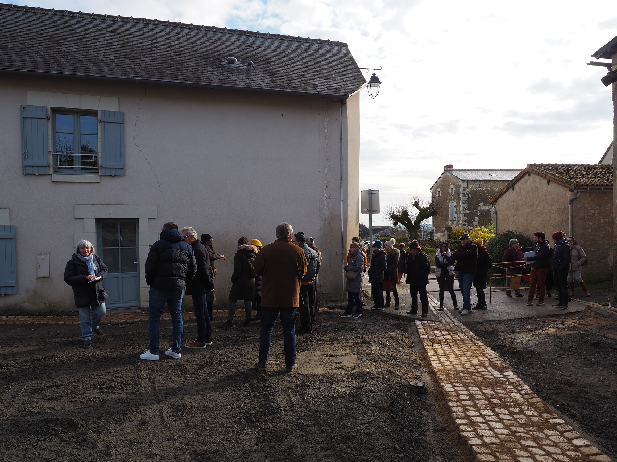 Cette phase permet d’appréhender la faisabilité des SaFN, partager des expérimentations avec les élus, services techniques et habitants et en tirer des enseignements : pertinence, limites, possibilités de déploiement, alternatives... En janvier 2025, les habitants ont participé à la vsite du chantier de renaturation de la Place Neuve, présenté par la maîtrise d’œuvre TALPA. Les communes participant au projet de renaturation ont pu découvrir les solutions mises en œuvre : fleurissement des pieds de murs, plantation d’arbres... L’occasion d’échanger sur ces sujets et de poser des questions.